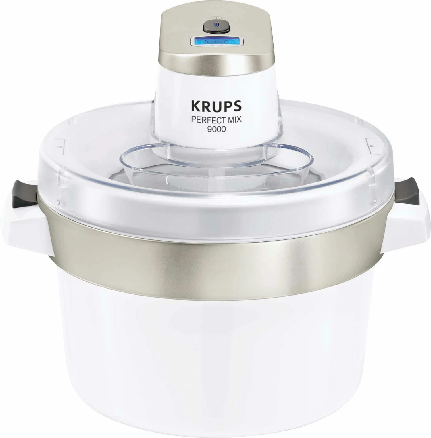 Doppelwandiger Kühlbehälter, max. 550 gr. Eis pro Behälter undArbeitsgang, Sicherheitskupplung, Griffrand, Spritzschutzdeckel mit Einfüllöffnung, Spatel, Abmessungen (BxTxH): 200x200x210 mm