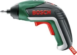 Bosch IXO. Spannzange Typ: Magnetischer Bithalter, Produktfarbe: Schwarz, Grün, Rot. Leerlaufdrehzahl (max.): 215 RPM, Schraubendurchmesser (max.): 5 mm, Maximum Drehkraft (leichte Verwendung): 3 Nm. Energiequelle: Akku, Batteriespannung: 3,6 V, Batterietechnologie: Lithium-Ion (Li-Ion). Gewicht: 300 g. Vibrationsemission: 2,5 m/s²