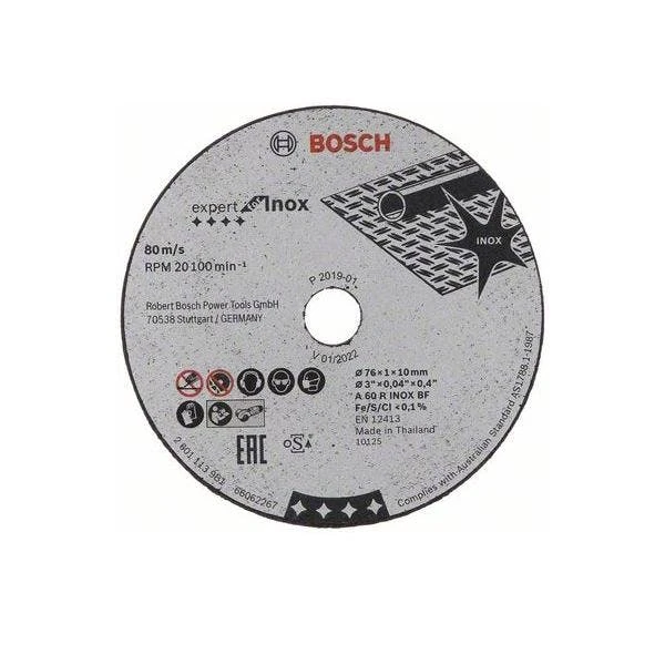Die Trennscheibe Expert for Inox kombiniert enorme Trennleistung in Stahl mit maximaler Sicherheit. Die Scheibe besteht aus besonders hartem Premium-Aluminiumoxid mit funktionalen Füll- und Zusatzstoffen, die die Wärmeentwicklung beim Schneiden reduzieren. Das Ergebnis sind eine hochwertige Schnittfläche und eine lange Lebensdauer der Scheibe. Zudem ist die Scheibe frei von Eisen, Schwefel und chlorierten Füllstoffen. Das präzisionsgefertigte Glasfasergewebe der Scheibe sorgt für maximale Arbeitssicherheit. Verwenden Sie diese Scheibe zum Schneiden von Stahl. Trennscheiben von Bosch erfüllen die höchsten Sicherheitsanforderungen wie EN 12413, FEPA und oSa.