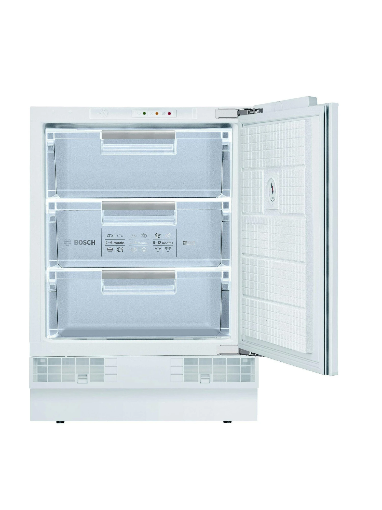 Bosch Serie 6 GUD15ADF0. Typ: Senkrecht. Nutzinhalt Gefrierfach: 106 l, Klimakategorie: SN-ST, Gefriervermögen: 12 kg/24h, Lagerzeit bei Störung: 23 h, Geräuschpegel: 38 dB, Sternekennzeichnung: 4*. Türanschlag: Rechts. Energieeffizienzklasse: F, Jährlicher Energieverbrauch: 184 kWh