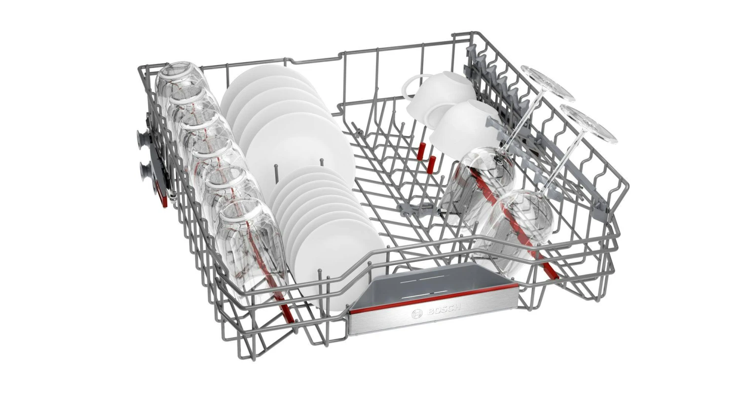 Bosch Serie 6 SMV6ZCX07E. Geräteplatzierung: Voll integriert, Produktgröße: Standardgröße (60 cm), Bedienfeld Farbe: Edelstahl. Anzahl Maßgedecke: 14 Maßgedecke, Lärmemissionsklasse: B, Geräuschpegel: 42 dB. Höhenverstellbare Füße: 6 cm. Energieeffizienzklasse: C, Wasserverbrauch pro Zyklus: 9,5 l, Energieverbrauch pro 100 Zyklen: 75 kWh. Breite: 598 mm, Tiefe: 550 mm, Höhe: 815 mm